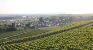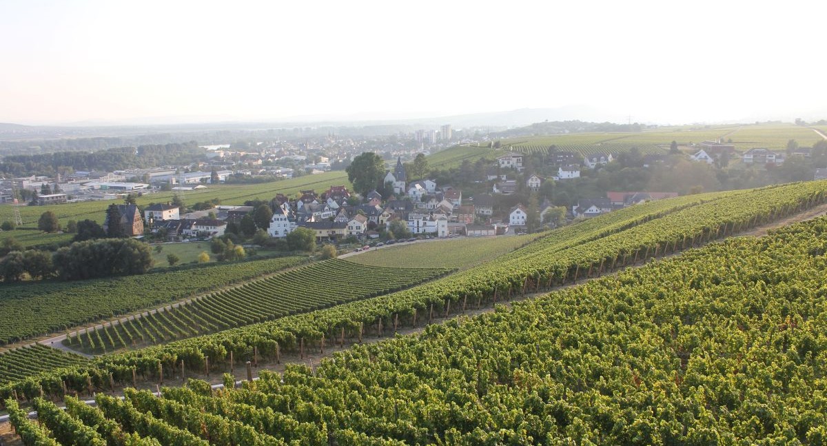 Saksa Rheingau viinitarhaa ja kylä kapeampi